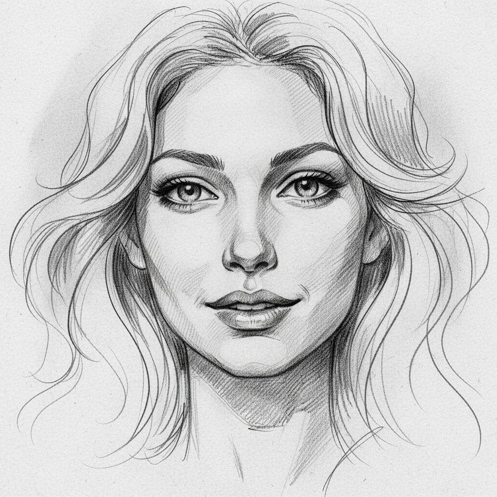 sketch of a woman's face, expressive line-work, in the style of beautiful portraits --ar 35:64 --stylize 750
