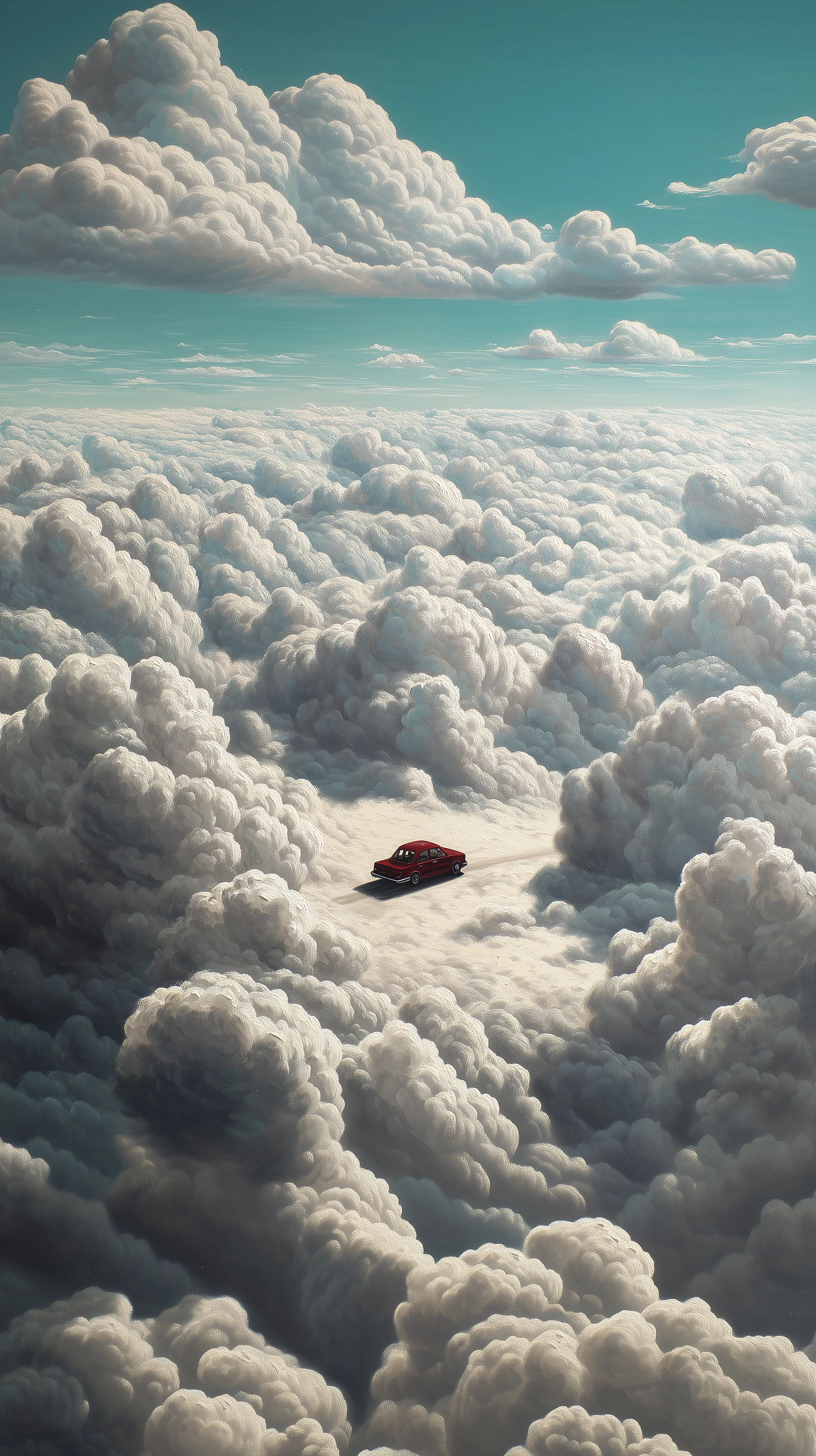 Generation parameters 1632x2912 Model used Midjourney 6.1 Prompt: oil painting, car, in the clouds, dreamlike --ar 9:16 --v 7