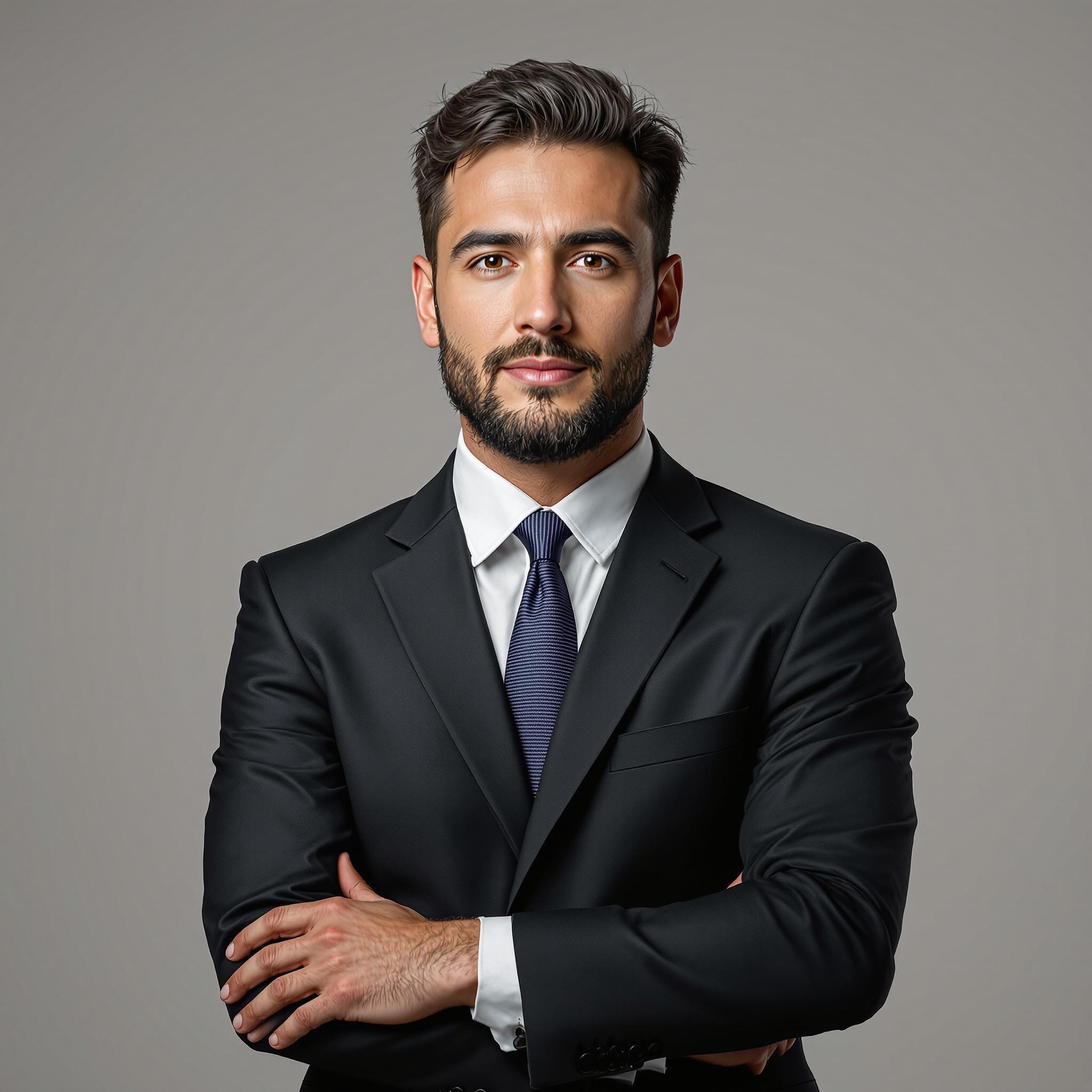 Professional LinkedIn photo, man in a dark suit, neutral background, photorealistic, 8k –cref https://cdn.discordapp.com/attachments/… –cw 100